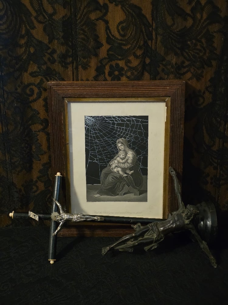 this is a genuine antique Bible page and includes a real preserved spider web. all my webs are from my front and back garden.