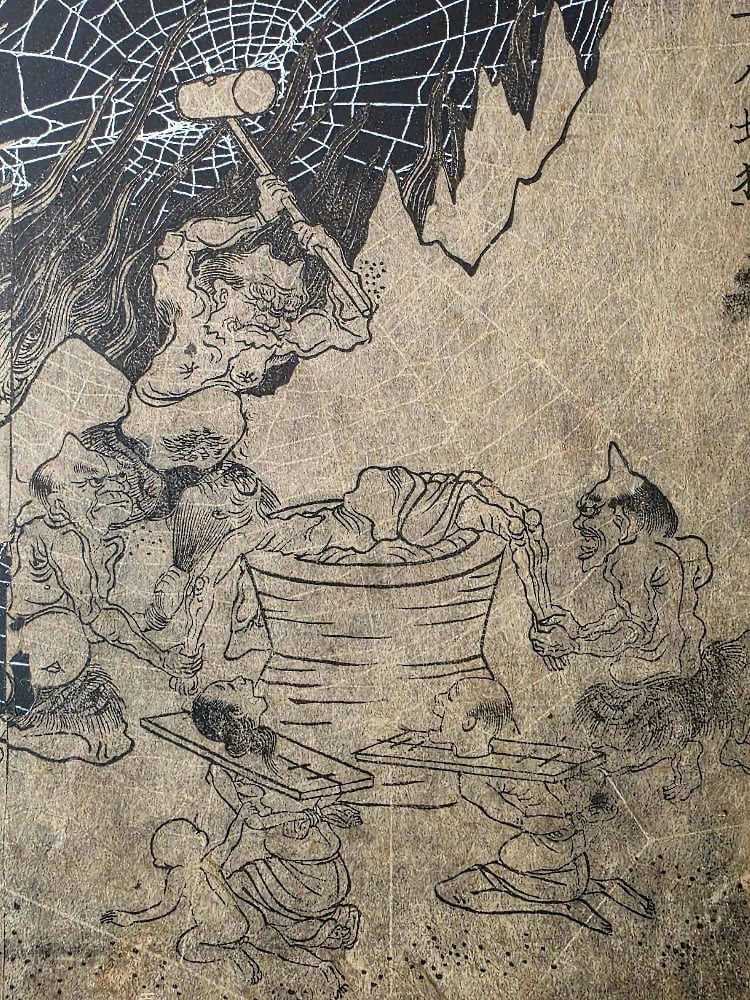 1800s - Japanese collection “HELL SCAPE“ with preserved webs. 1