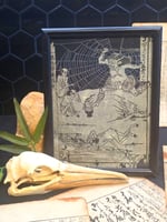 This haunting tale of Dragons, demons, Hell, is now paired with preserved spider webs to echo the eerie beauty of these pieces. Very limited collection. Only one of da h piece.