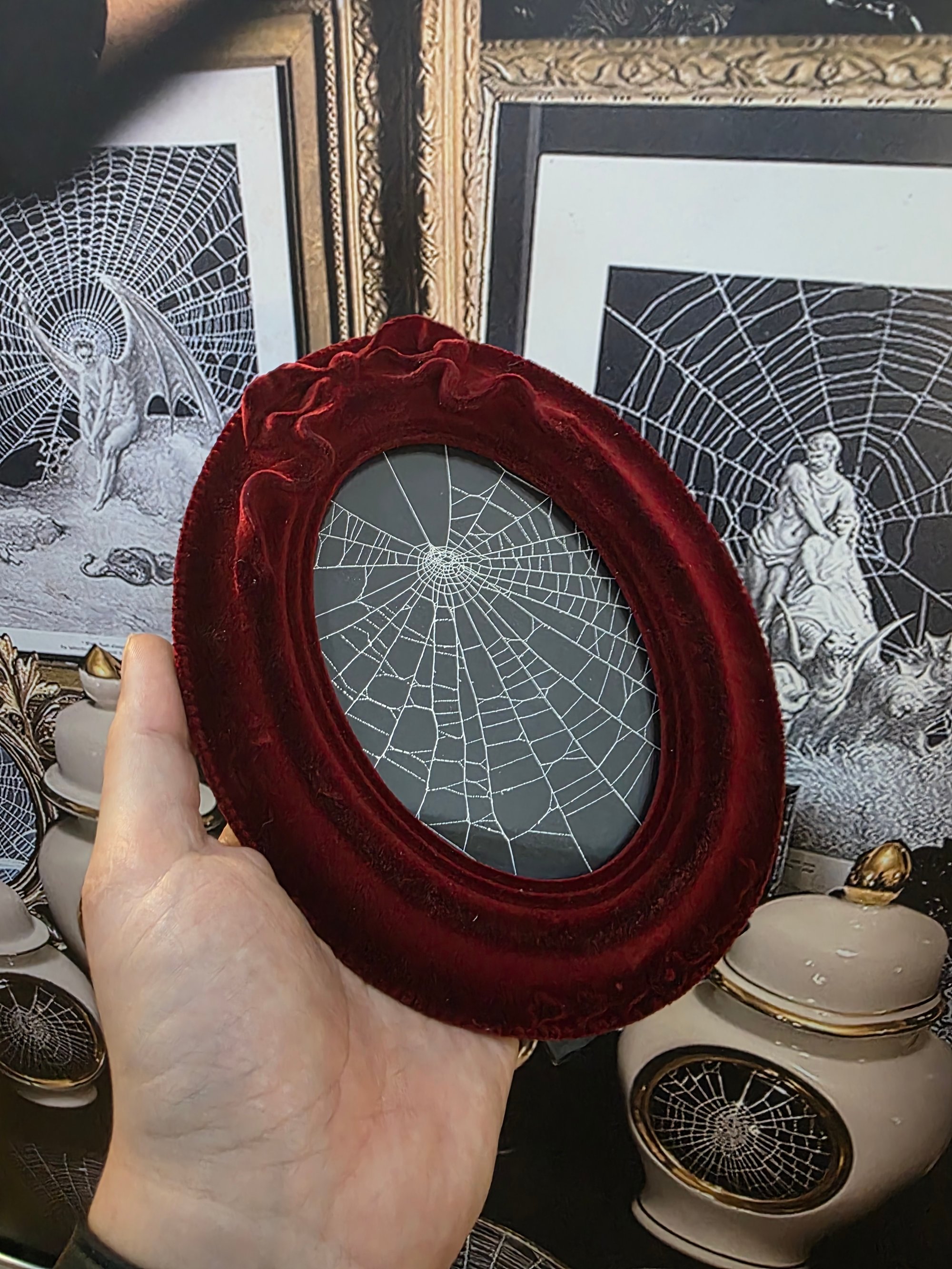 Gothic Red velour framed Spider web