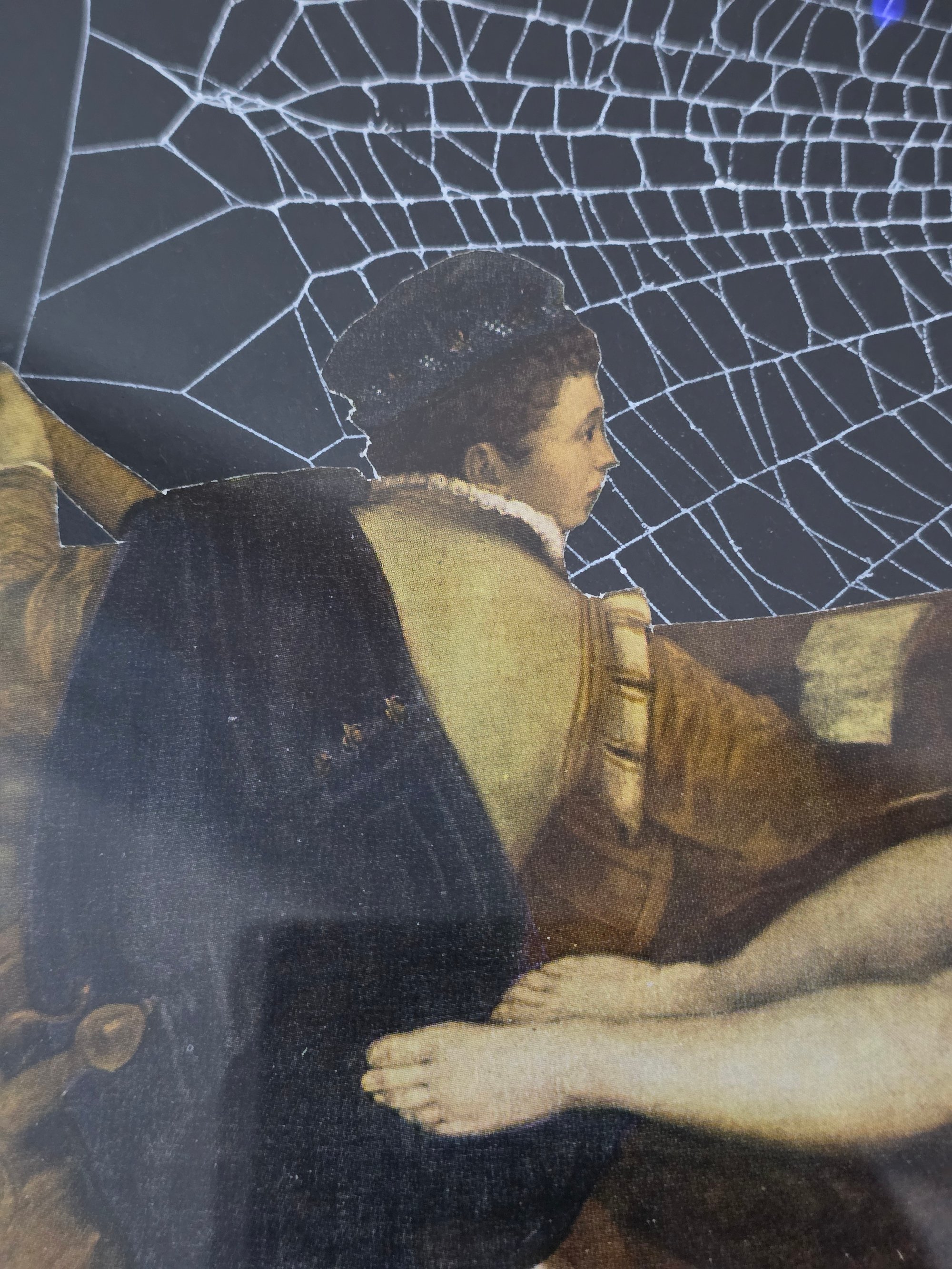 A lovely preserved spider web with Vintage fine art page "Venus" inside a lovely matching frame