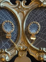RARE VINTAGE chained Collar/scarf pins with TWO baby preserved web webs