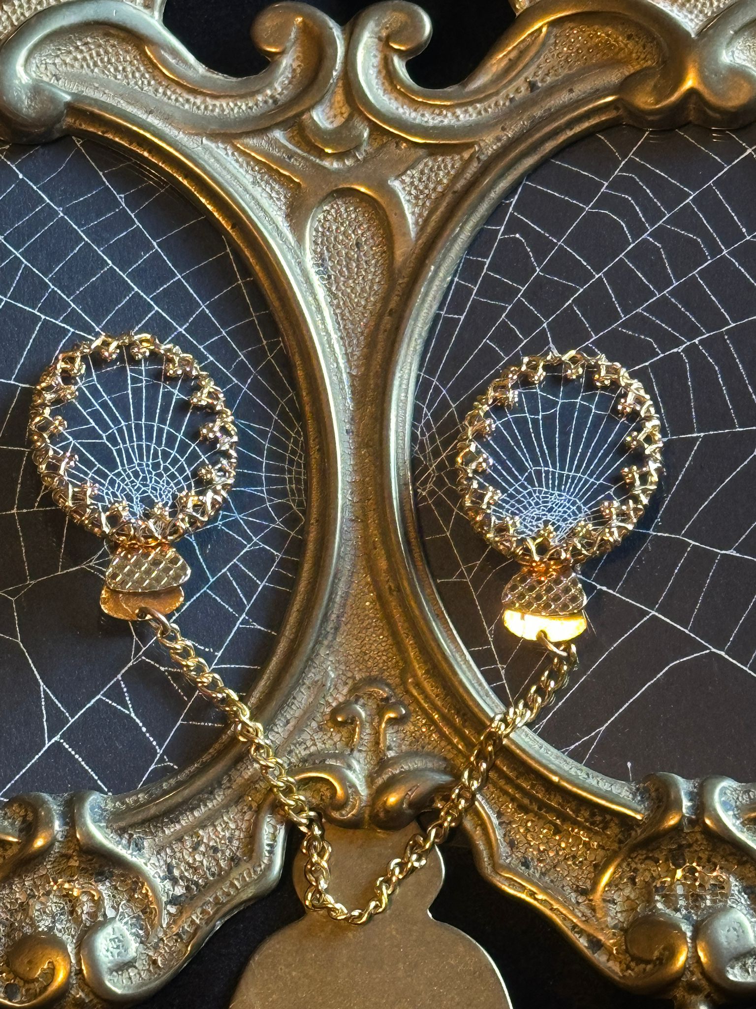 RARE VINTAGE chained Collar/scarf pins with 2 baby spider webs
