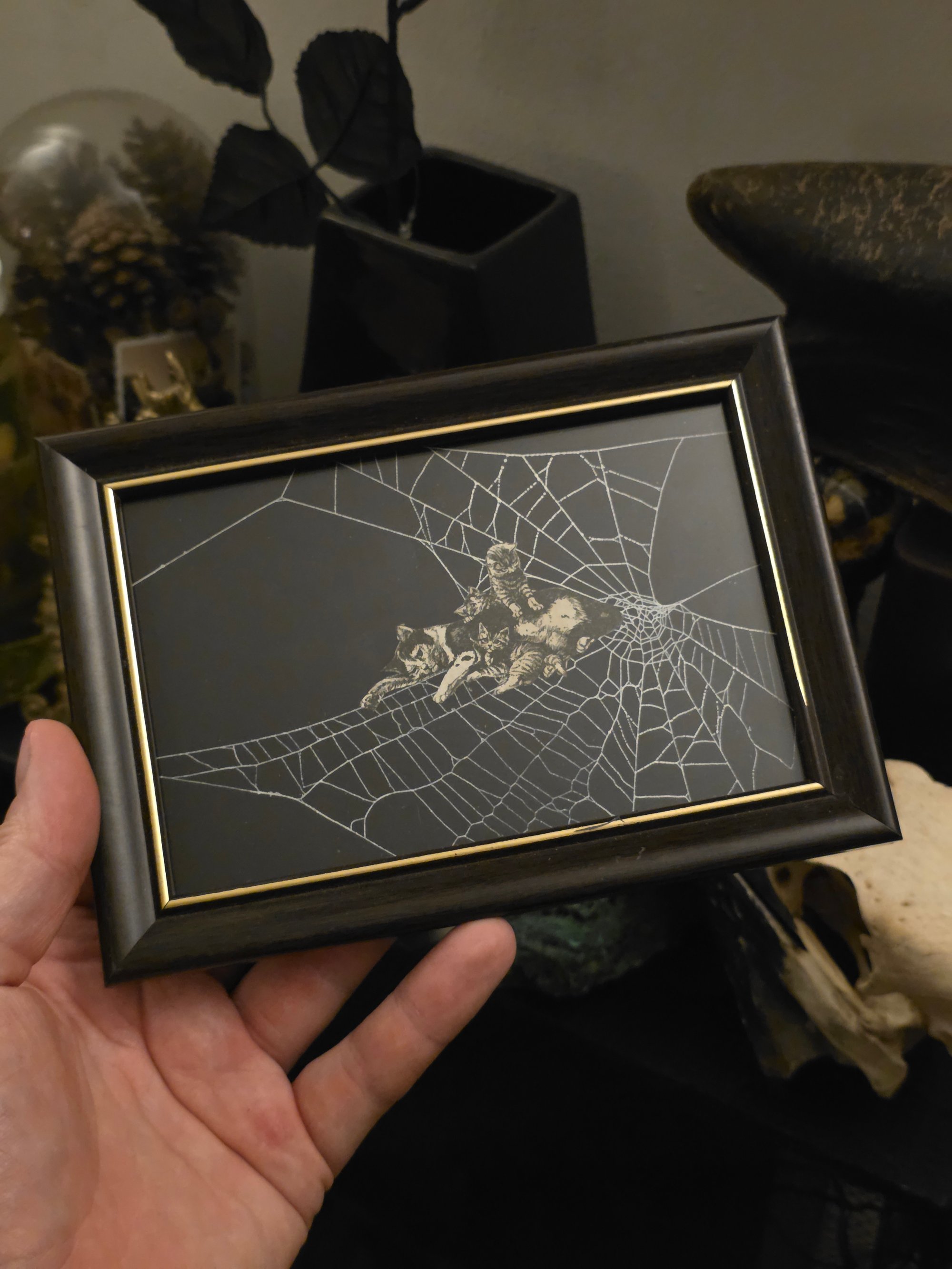 Victorian Cat Collection - 1800s Cat engravings with real preserved web