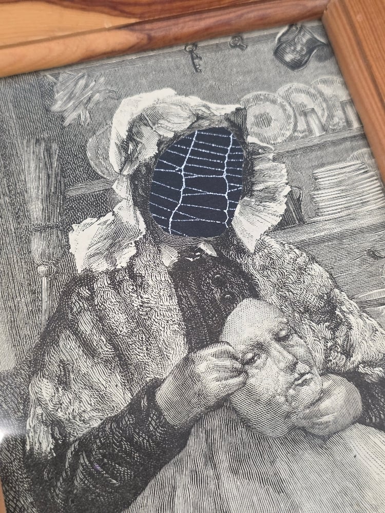 Oh this collection I have placed the faces in various places to create a delicate, yet haunting piece. Every one is so different, from the image, the individual and beautiful web - right down to the unique frame that I personally choose to help contribute to the piece.