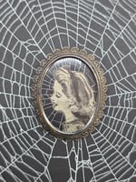These incredible alternative statement pieces are genuine vintage brooches, with 1940s page engravings, and a real spider web , each one different and contains a real preserved web, these brooches used to be worn with embroidery inside, they can go with any outfit, onto a hat , bag or scarf or alternatively look amazing as a shelf/home decoration.