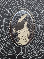 These incredible alternative statement pieces are genuine vintage brooches, with 1940s page engravings, and a real spider web , each one different and contains a real preserved web, these brooches used to be worn with embroidery inside, they can go with any outfit, onto a hat , bag or scarf or alternatively look amazing as a shelf/home decoration.