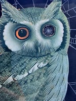 this piece is aimed towards those who like to display something a little different. It has a beautiful Owl with a Moth, there are three preserved webs paired with this artwork. This piece is so beautiful.
